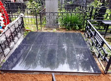 В завершении устанавливаем цветник, наполняем его каменной крошкой. Покрываем надписи на граните акриловой краской, которая сделает текст заметным во время дождя. Перед сдачей объекта клиенту проводим на участке влажную уборку. На последних фотографиях видно, что благодаря наземному покрытию место захоронения преобразилось до неузнаваемости.