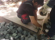 Укладка гранитной брусчатки,